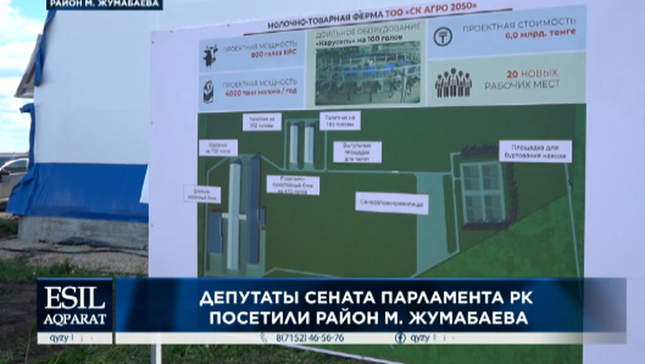 Следующим объектом, который посетили сенаторы стала строящаяся молочно-товарная ферма ТОО «СК АГРО 2050» в с. Советское. Проектная стоимость составила 6 млрд тенге, из которых 2,2 млрд заемные средства через АО СПК «Солтүстік». Здесь появится 20 новых рабочих мест. Сама ферма будет рассчитана на 800 голов КРС, в дальнейшем на 3.600. Планируется производить 400 тонн молока в год.